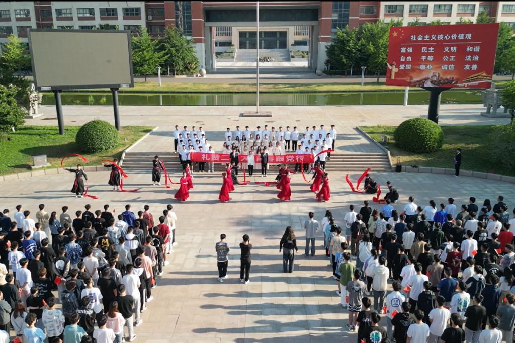 6月12日清晨,威尼斯5139手机版于泰山广场举行“礼赞二十大,青春跟党行”主题升旗仪式。威尼斯5139手机版党委副书记高静、团委书记朱统汉、全体辅导员及学院21、22级学生共同参加了此次升旗仪式。