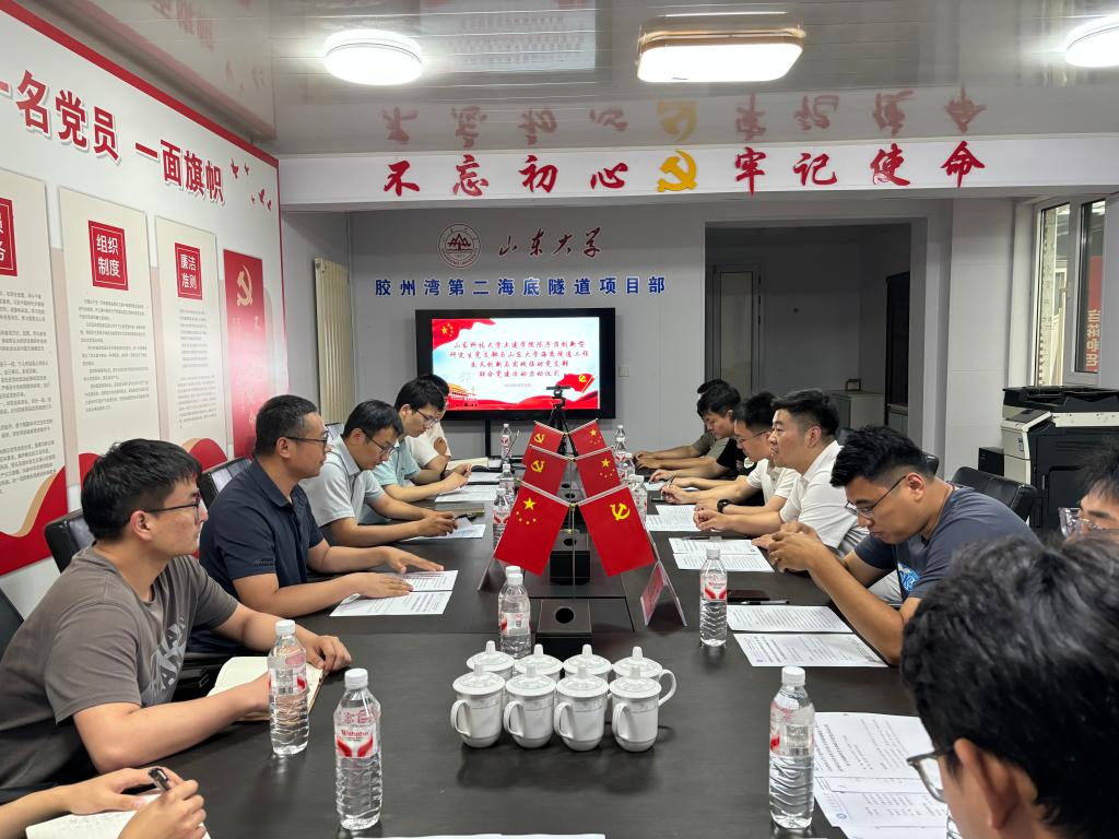 为深入贯彻落实党的二十大和二十届二中、三中全会精神,扎实推进学习贯彻习近平新时代中国特色社会主义思想主题教育走深走实,6月25日,在七一建党节来临之际,威尼斯5139手机版威尼斯5139手机版山晖团队党支部、陈子荫创新型研究生党支部与山东大学海底隧道工程交叉创新与实践临时党支部在山东大学驻青岛胶州湾二隧项目部开展党支部联合党建活动启动仪式。山东大学海底隧道工程交叉创新与实践临时党支部书记、齐鲁交通学院刘洪亮教授,齐鲁交通学院陈雨雪老师、潘维臣老师,威尼斯5139手机版副院长李为腾教授,副院长、山晖团队党支部书记杨旭旭教授,山晖团队党支部副书记孙尚渠教授,团委辅导员、陈子荫创新型研究生党支部书记董继先及各党支部党员代表参加活动,活动由董继先主持。