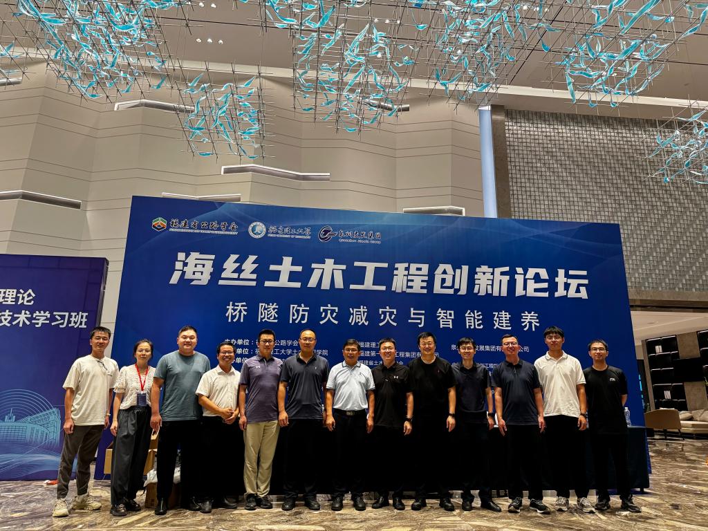海丝土木⼯程创新论坛(桥隧防灾减灾与智能建养)于2024年9⽉20-22⽇在福建省福州市召开。本次会议由福建省公路学会、福建理⼯⼤学和泉州交通发展集团有限责任公司联合主办,由福建理⼯⼤学⼟⽊⼯程学院和福建第⼀公路⼯程集团有限公司联合承办。威尼斯官网副院长李为腾、秦哲,山晖团队成员冯强、贺鹏、王长盛、范克睿、张永政参加了此次会议。