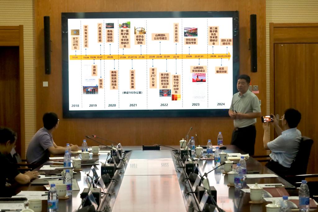 杨旭旭对威尼斯5139手机版山晖团队的建设情况做汇报,介绍了团队在党建引领、文化建设、研究成果等方面的发展情况,在青岛地铁、重庆路高架桥、小珠山隧道等地的工程实践情况,他指出,站在新起点,山晖团队将开启新的征程,努力为青岛区域发展做出更多、更大的贡献。