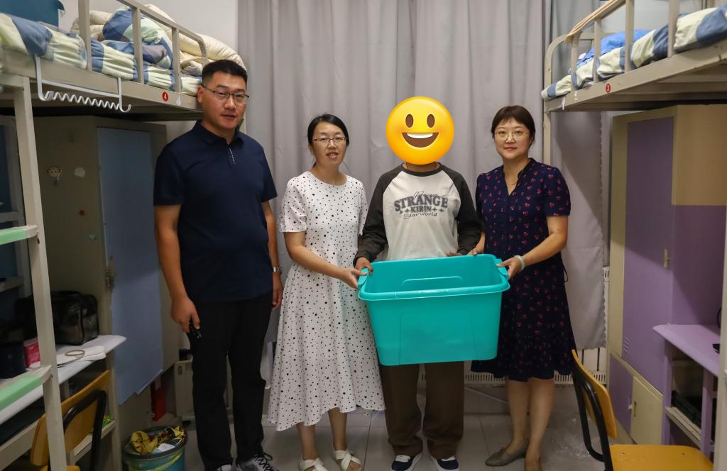 来校报到行程确定后,学院心系这位贫困学生,安排专人接站,第一时间深入宿舍看望慰问,为学生送上了生活大礼包和中秋月饼。在与学生交谈过程中,高静等人详细询问其家庭情况、生活上的困难以及对大学生活的适应情况,鼓励学生不要被暂时的困难打倒,要坚定信心,努力学习,学院会尽最大的努力为其提供帮助和支持。学生略显羞涩但眼中满是感动,一一回答着老师们的问题,并表示一定好好学习,不辜负老师们的关心与期望。