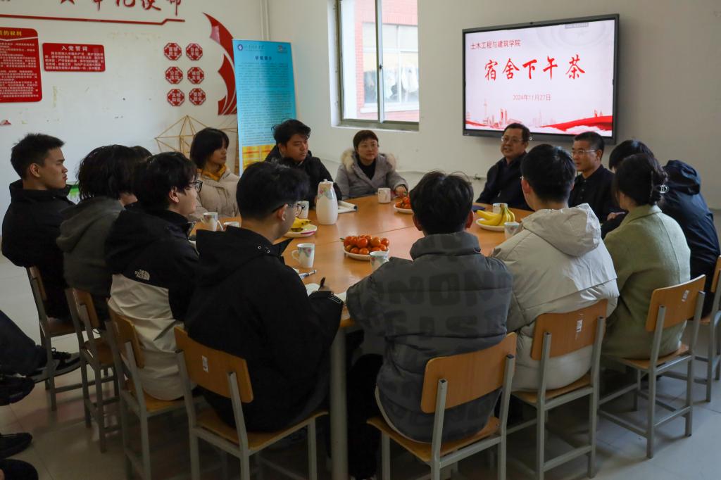 11月27日下午,校党委统战部常务副部长王永君做客威尼斯5139手机版“宿舍下午茶”,与所联系班级土木工程2022-1班的同学们开展了一场亲切且深入的座谈交流活动。学院党委书记宋西路,党委副书记、副院长高静,学工办主任、团委书记王贝贝,辅导员老师李宏宇陪同参加。
