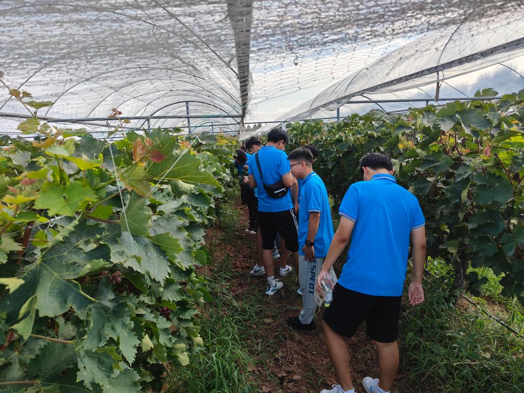聚焦时代主题,讲师团成员奔赴兖州区乡村振兴示范村——漕河镇管口新村开展深度调研。在讲解员的介绍下,讲师团成员详细了解该村“一引四联”的发展模式,即以党建为引领,联动合作社、企业、科研机构和农户,形成了“抱团发展、互利共赢”的乡村治理新模式。在村团干部的带领下,管口村从传统农业村蜕变为现代农业示范村。随后成员们走访了村内的特色种植基地、文化活动中心等场所,参观了恒温种子冷藏库、良种培育实验室和葡萄种植园,亲身感受乡村振兴给农村带来的巨大变化。同学们纷纷表示,要将所学专业知识与乡村发展需求相结合,为推动乡村振兴贡献青春力量。