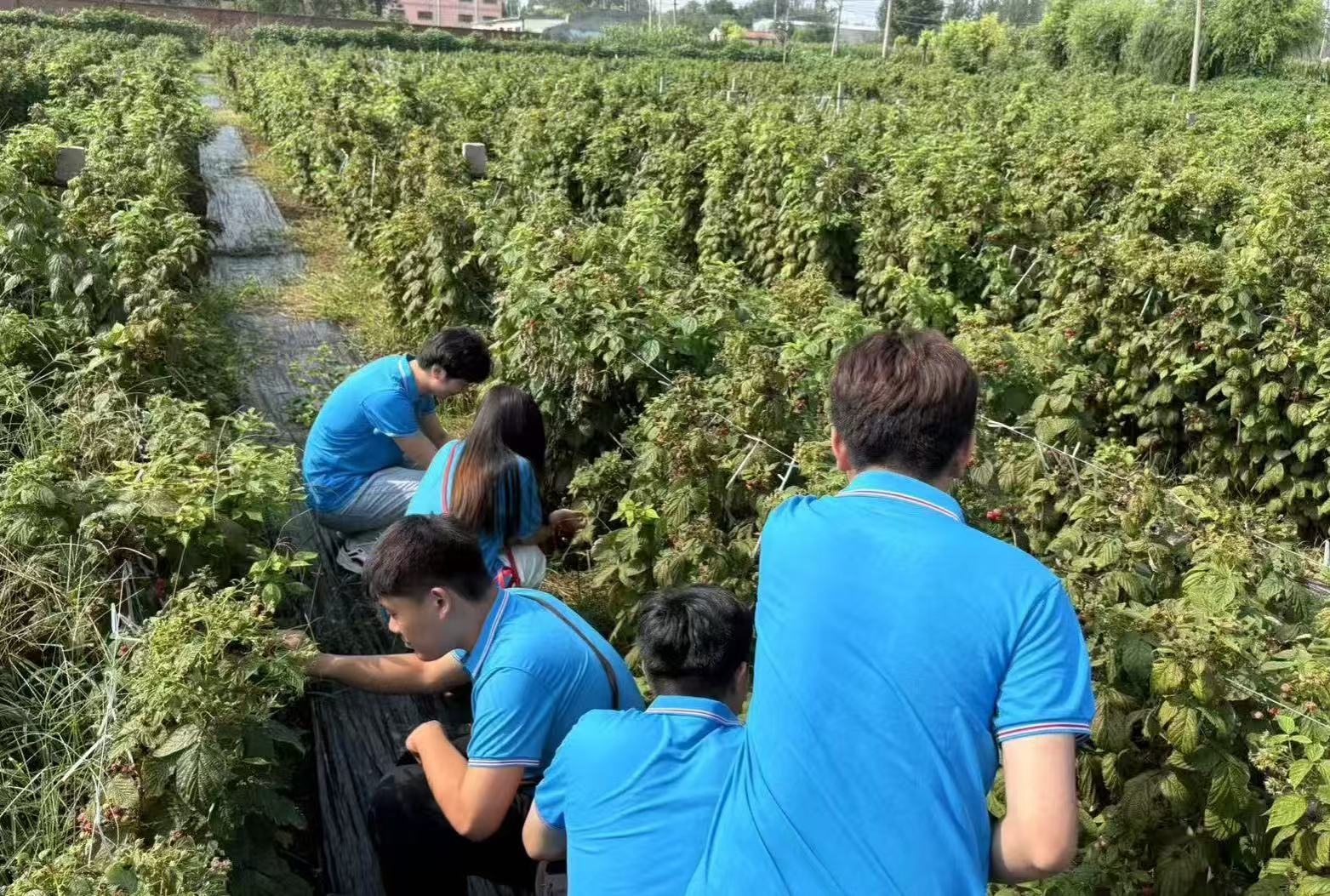 团队成员体验树莓采摘
