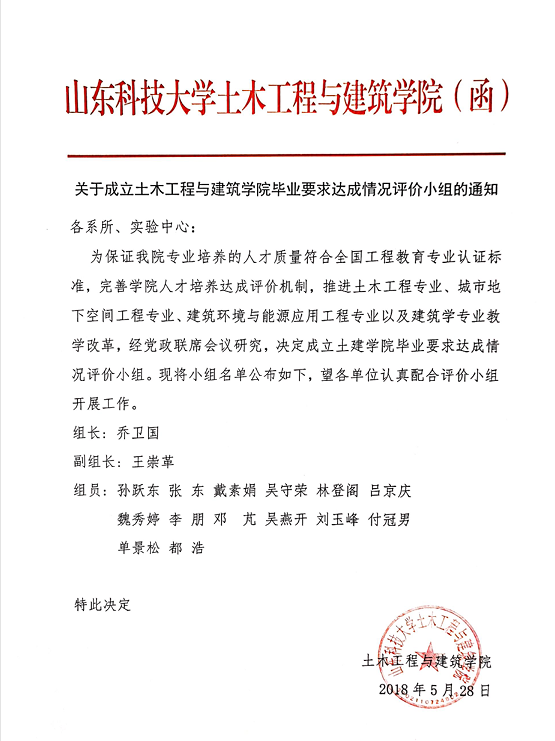 关于成立威尼斯5139手机版毕业要求达成情况评价小组的通知